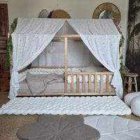 Doux et bohème, il habille délicatement le lit montessori.