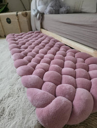 Petit plus : Petite astuce, vous pouvez l'attacher à votre lit cabane, en glissant un lien, ou une ficelle, entre deux brins du tapis. Super avantage pour être sur que le tapis reste bien devant l'entrée du lit, même en pleine nuit !